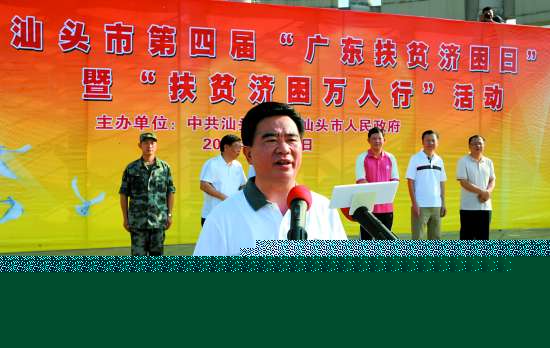 “爱心汇聚万人同行”,2013年6月30日上午,第四届“广东扶贫济困日”活动启动仪式暨汕头市“扶贫济困万人行”活动在人民广场隆重举行。万名市民因为爱心汇聚在一起,以徒步的方式,倡导扶贫济困风尚,共建和谐社会,共享幸福成果。
