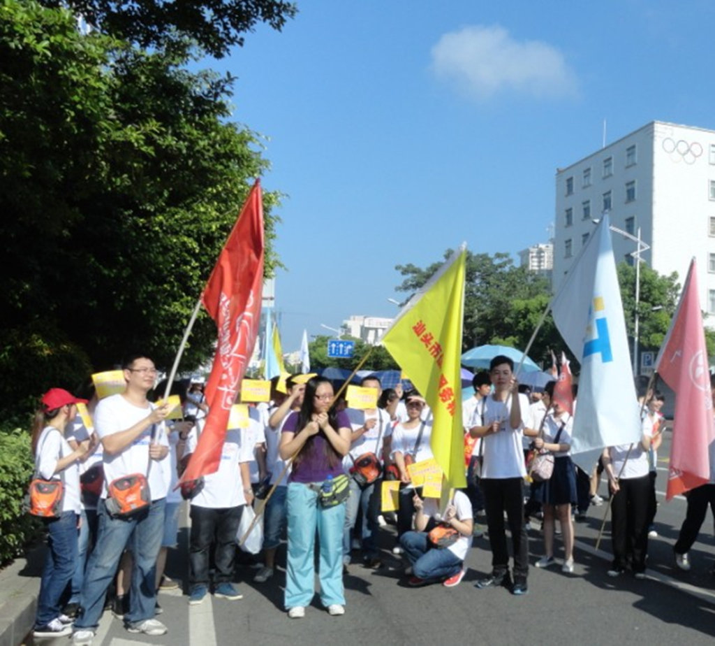 汕头市各部门、各单位的近万名干部职工以及热心群众组成的万人行队伍浩浩荡荡地从人民广场起步,行至华侨公园。我协会也组织了包括秘书处工作人员、潮汕IT智库项目工作人员、汕头市捷信科技有限公司员工、广东快通信息科技有限公司员工、汕头市龙湖区连邦软件产业有限公司员工等共83人的队伍,参加了此次“扶贫济困万人行”活动。6月26日,接到汕头市民间组织管理局组织的“全市社会组织参与扶贫济困活动动员会”会议指示,秘书处就向所有会员传达会议精神,发动会员企业积极响应扶贫济困号召,鼓励会员企业通过步行、捐款、捐物等多种形式来声援活动。活动当天,除了协会组织的联合队伍,协会会长单位中国电信汕头分公司也组织百余人的队伍、副会长单位广东移动汕头分公司的旗帜早早地飘扬在广场上空,副会长单位公诚咨询有限公司发动员工捐款12400元支持扶贫济困日活动。
