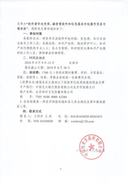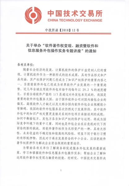 转发关于举办“软件著作权变现、融资暨软件和信息服务外包操作实务专题讲座”的通知