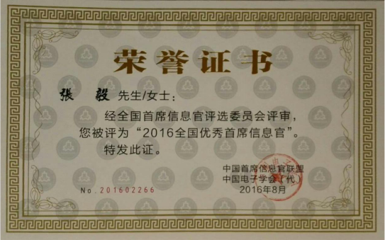 经由我会向工信部推荐的广东天亿马信息产业股份有限公司CIO张毅先生,经过全国首席信息官评选委员会的严格评审,层层突围,最终在全国范围内的参选者中脱颖而出,荣获“2016全国优秀首席信息官”称号。