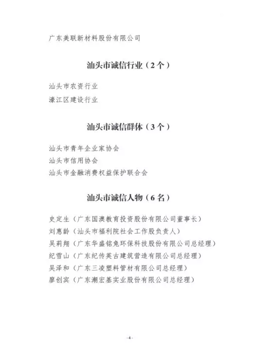 为培育和践行社会主义核心价值观、挖掘宣传一批在诚信守法、承担社会责任、建设文明汕头方面表现突出的诚信单位和个人,推广诚信经验,树立诚信典范,建设诚信汕头,市文明委评选出一批诚信建设先进典型。