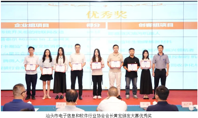 8月23日,由广东省工业和信息化厅指导、汕头市工业和信息化局主办、汕头市电子信息和软件行业协会承办、化学与精细化工广东省实验室、汕头大学创业学院、广东以色列理工学院团委、深证中小企业服务中心、深圳私募基金业协会、深圳市软件行业协会、深圳市工业互联网行业协会、汕头市上市公司发展促进会、汕头市工业设计协会、汕头市风能协会、汕头市大健康产业协会、汕头市专精特新企业发展联盟、汕头市知识产权协会、中国电信股份有限公司汕头分公司、中国联合网络通信有限公司汕头市分公司、汕头轻工装备研究院、汕头市进出口商会、汕头市塑胶行业商会、汕头市智能制造产业协会联合协办的第八届“创客广东”汕头市中小企业创新创业大赛暨第五届“创客汕头”大赛决赛及颁奖仪式圆满举办,全市创新企业、创客精英再聚首,24个优秀项目同场角逐。活动由协会秘书长滕丽秋主持。